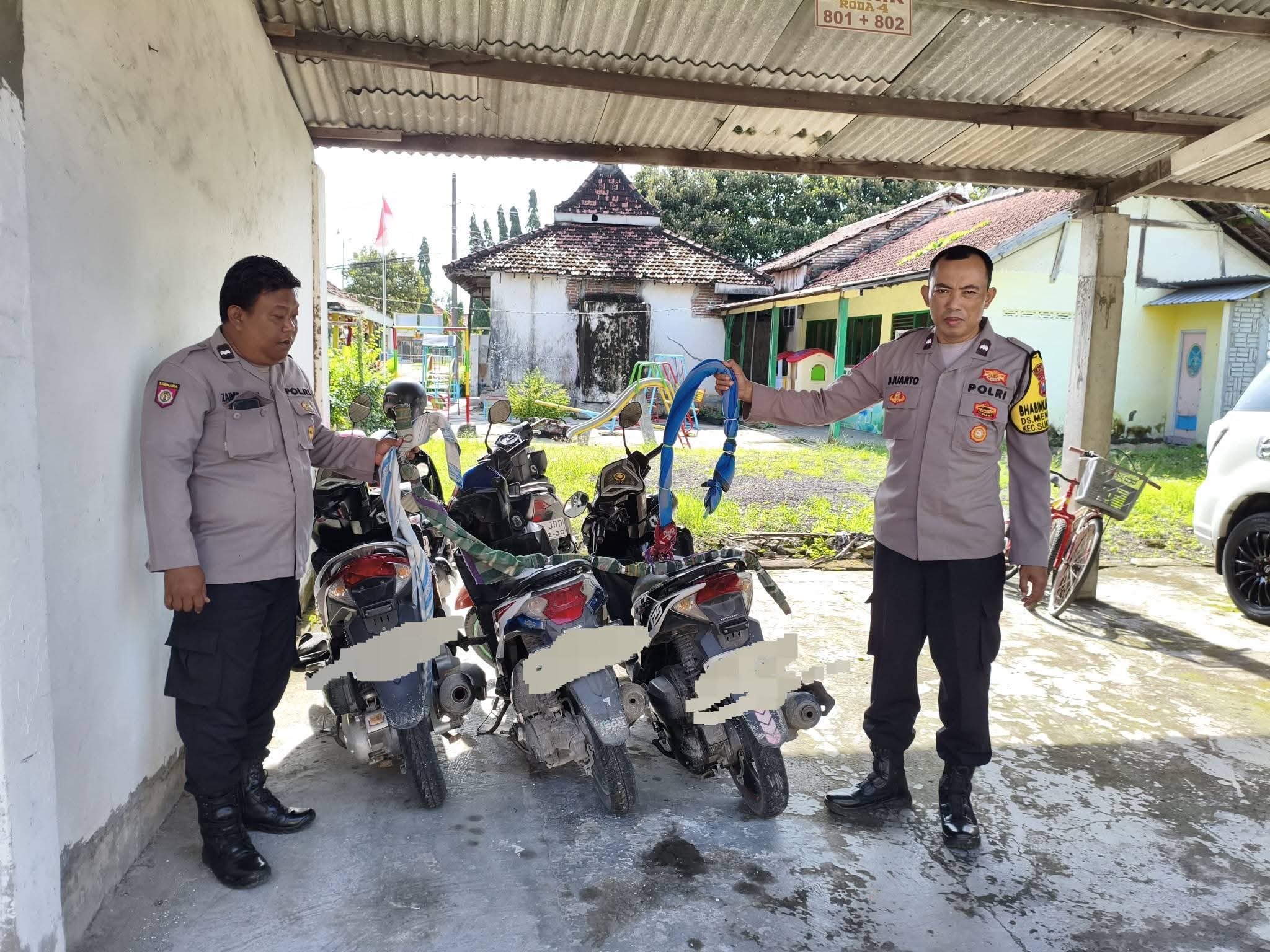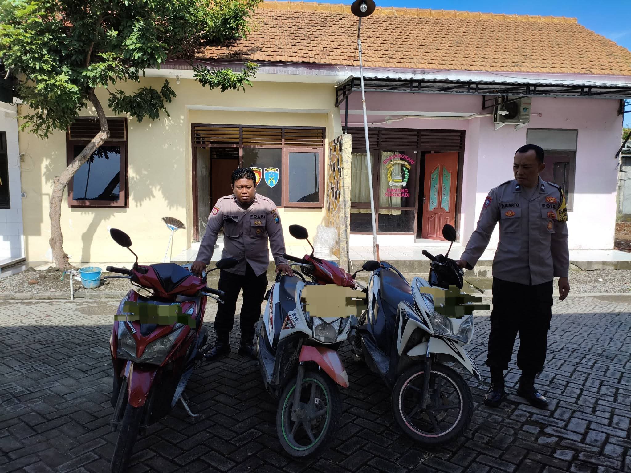 Adapun barang bukti yang diamankan yakni 1 unit Honda Vario warna merah Nopol S-66xx-LU, 1 unit Honda Vario warna putih Nopol S-28xx-JAP, 1 unit Honda Beat warna putih Nopol S-57xx-JBH, dan 3 helai kabel dan selang yang sudah dililit sarung.